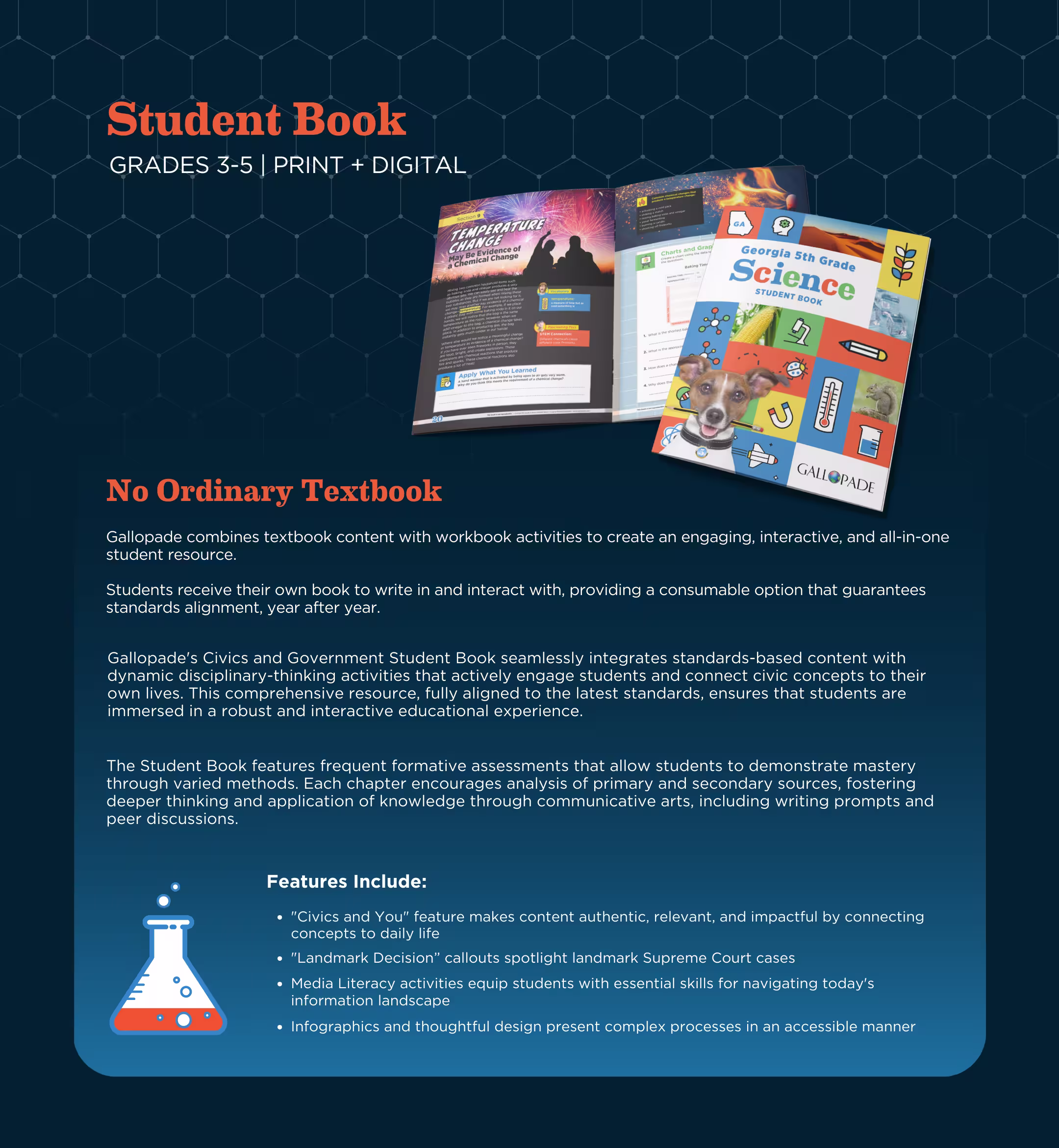 Gallopade Curriculum offers standards-based, state-customized 3rd - 5th grade science programs developed for real classroom instruction. With inquiry-driven content and hands-on learning tools, Gallopade helps students succeed and supports teachers with everything they need to implement effectively.