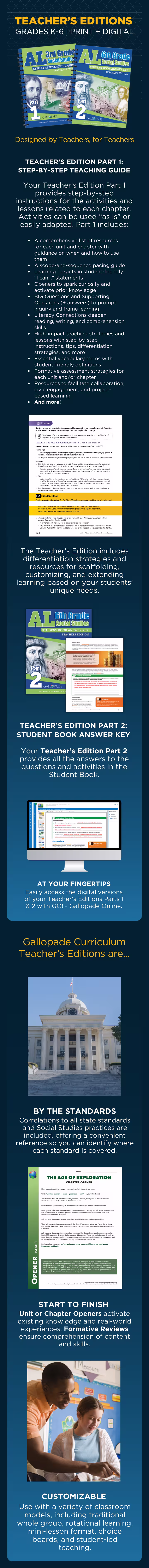 Step-by-step lessons, abundant resources, and purposeful activities support an engaging and interactive learning experience, while also giving teachers the flexibility and tools to differentiate instruction to help every student succeed. All elements of Gallopade Curriculum work together to create an effective, easy-to-use program.