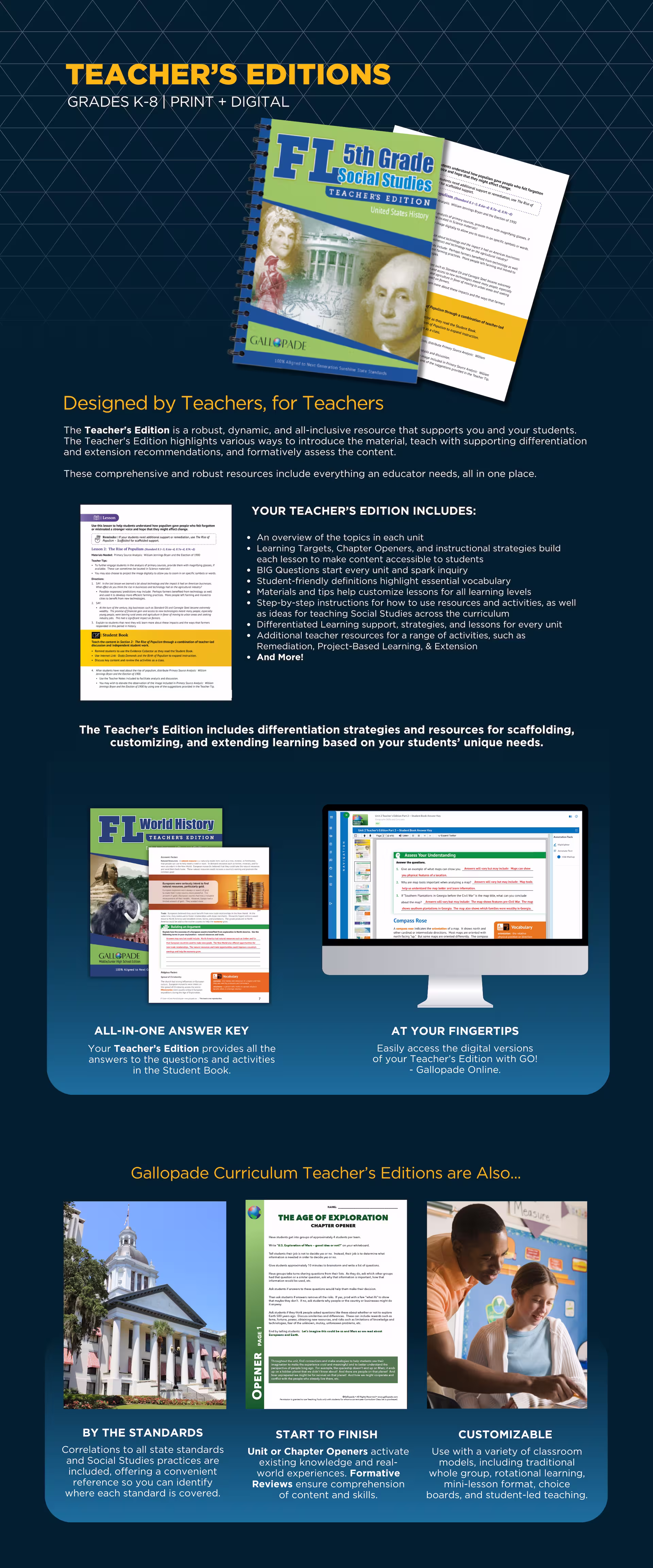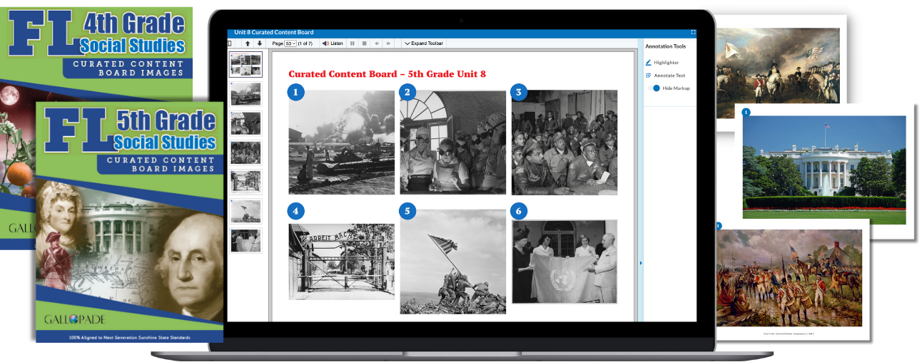Step-by-step lessons, abundant resources, and purposeful activities support an engaging and interactive learning experience, while also giving teachers the flexibility and tools to differentiate instruction to help every student succeed. All elements of Gallopade Curriculum work together to create an effective, easy-to-use program.