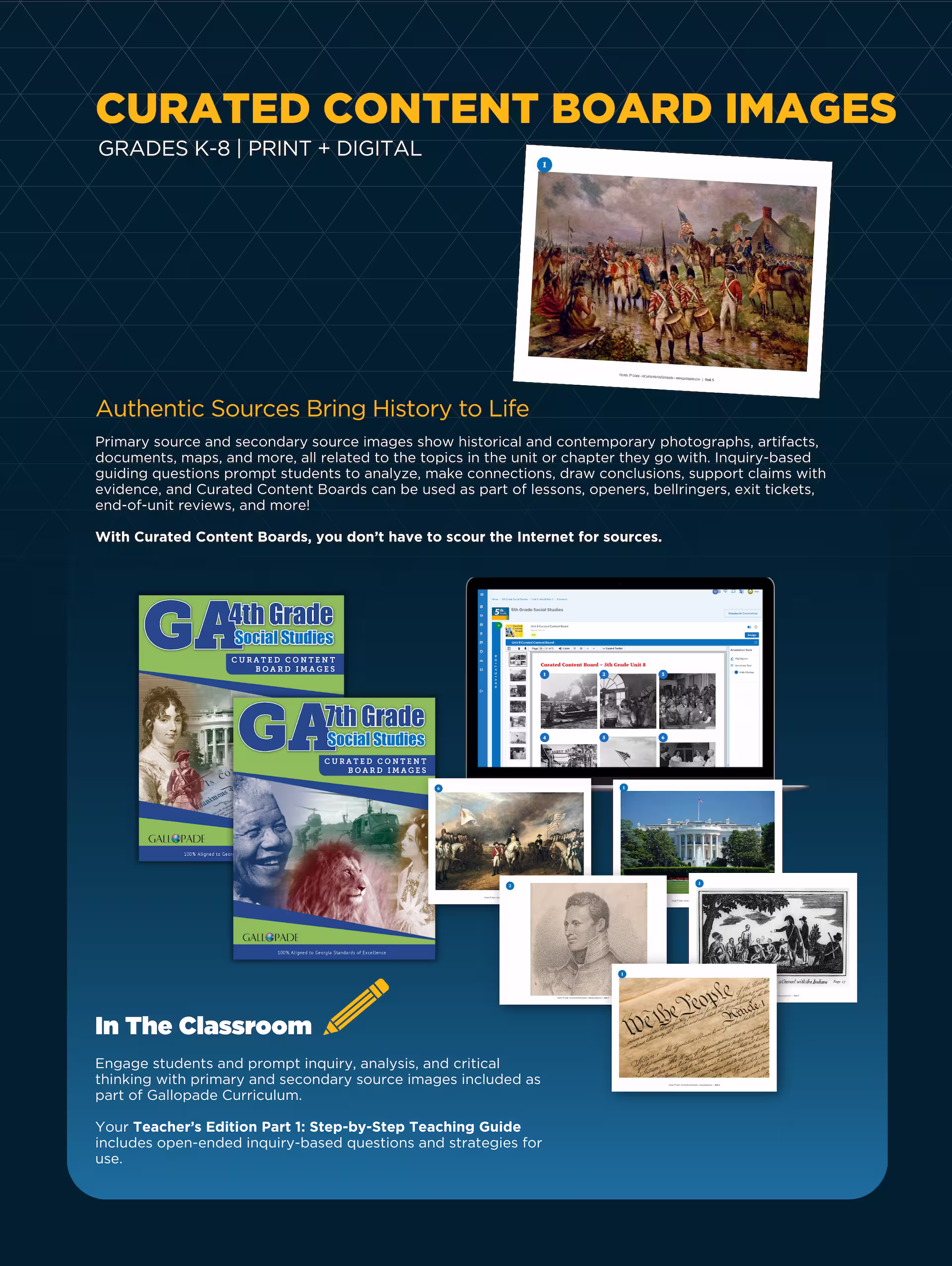 With Gallopade Curriculum, you’ll be prepared to guide students through a customized learning experience, positively impacting their mastery of the standards and helping them prepare for college, career, and civic success.