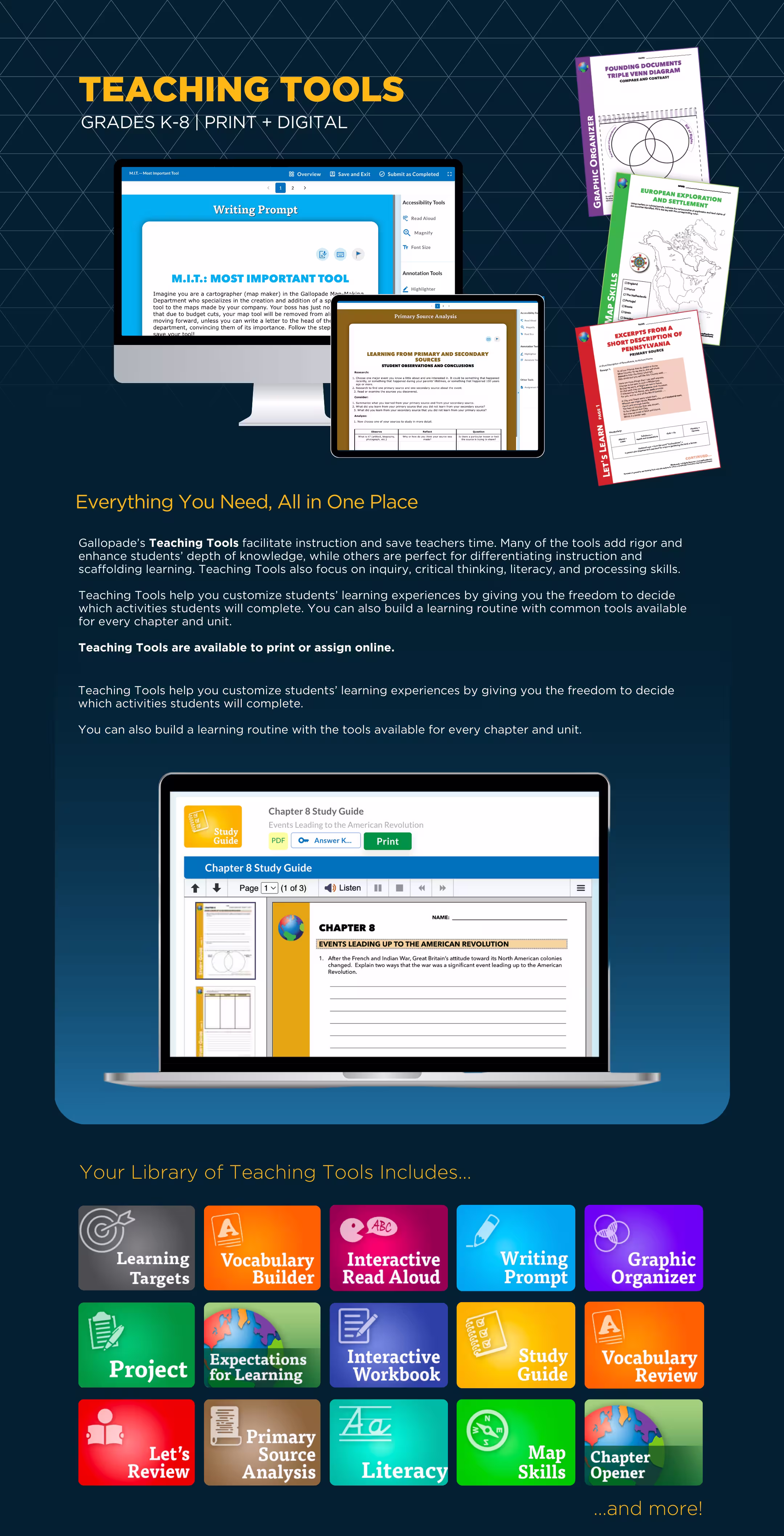 Gallopade seamlessly integrates print and digital resources to create a dynamic learning program that empowers teachers to meet the needs of all learners.