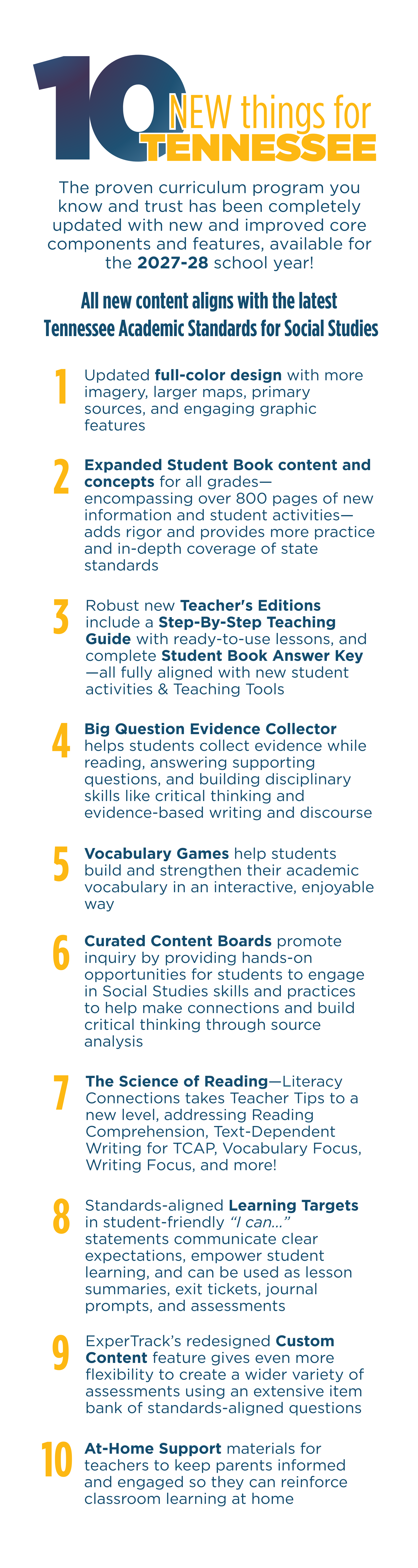 Our dedicated team of curriculum experts is available to answer all of your questions and to help you decide on the right products and solutions to meet your needs. Reach out at any time to receive more information about the latest updates for Tennessee, custom quotes, and samples and demos.